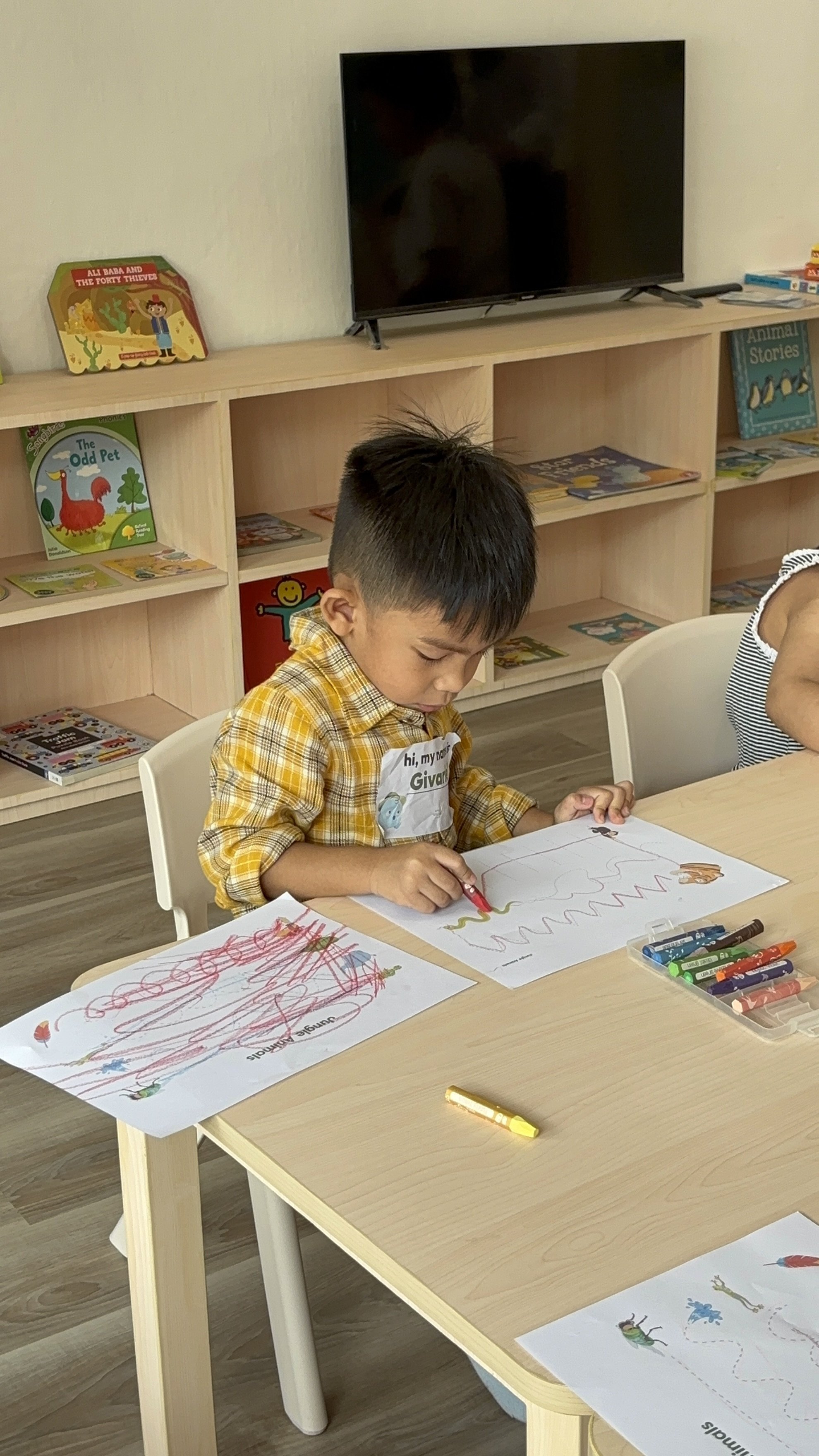 Di tahap Nursery, kami terus mendorong kemandirian anak ke tingkat yang lebih tinggi. Anak-anak kini didukung untuk lebih mandiri dalam rutinitas sehari-hari, seperti memakai sepatu dan jaket mereka sendiri, membereskan mainan, serta memakan makanan mereka dengan alat makan yang benar. Ini adalah masa di mana rasa percaya diri mereka tumbuh pesat karena mereka menyadari, "Aku bisa melakukannya sendiri!" Kami juga memastikan mereka semakin terbiasa dan mandiri sepenuhnya dalam menggunakan toilet.