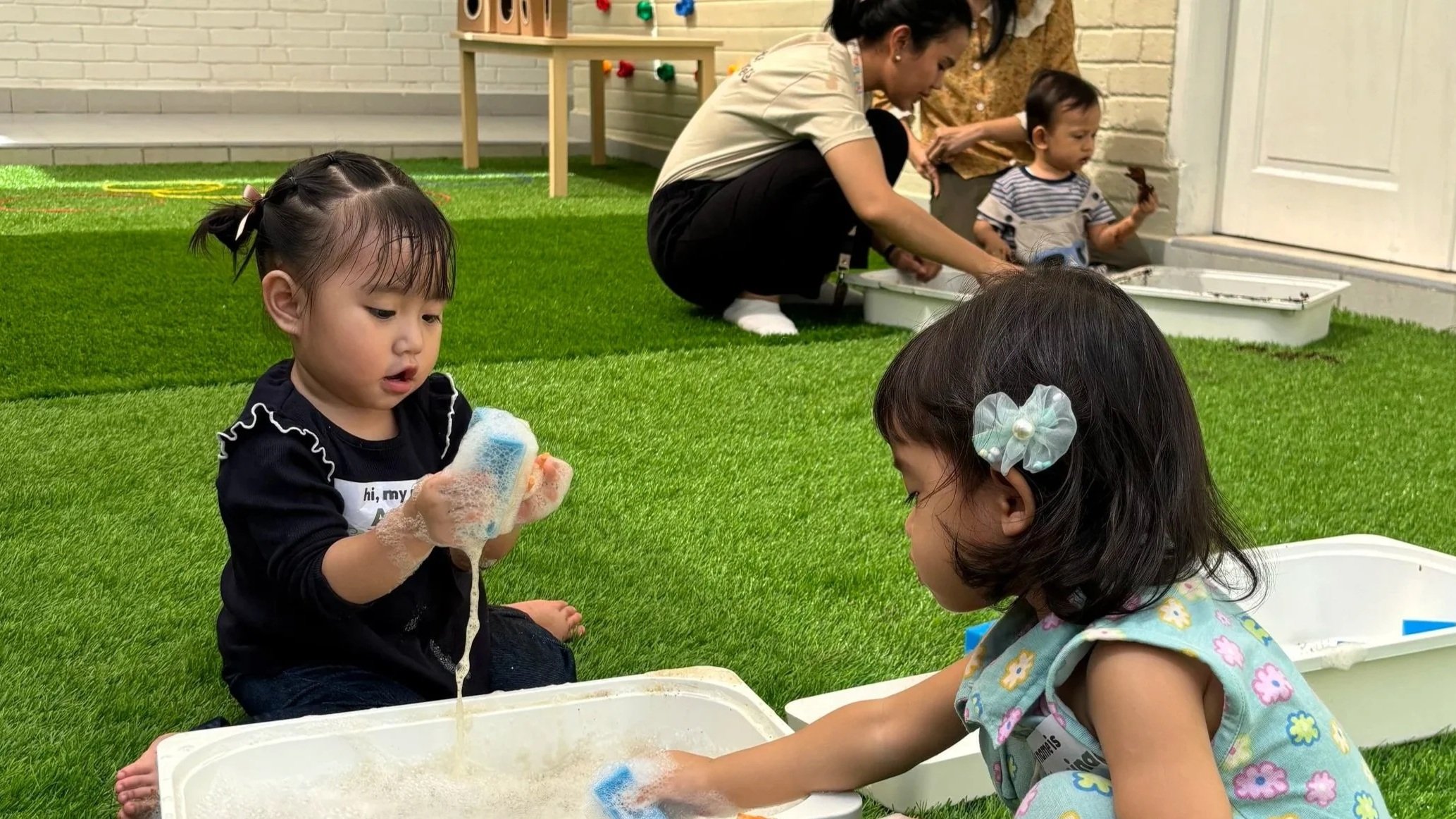Anak Anda juga akan didorong untuk bermain dengan rasa percaya diri yang semakin meningkat, baik sendiri maupun dengan anak-anak lain, karena mereka tahu bahwa guru mereka ada di dekatnya dan siap membantu. Kami juga membimbing mereka dalam menghadapi emosi dengan membantu mereka mulai mengungkapkan perasaan mereka, menggunakan kata-kata maupun tindakan.